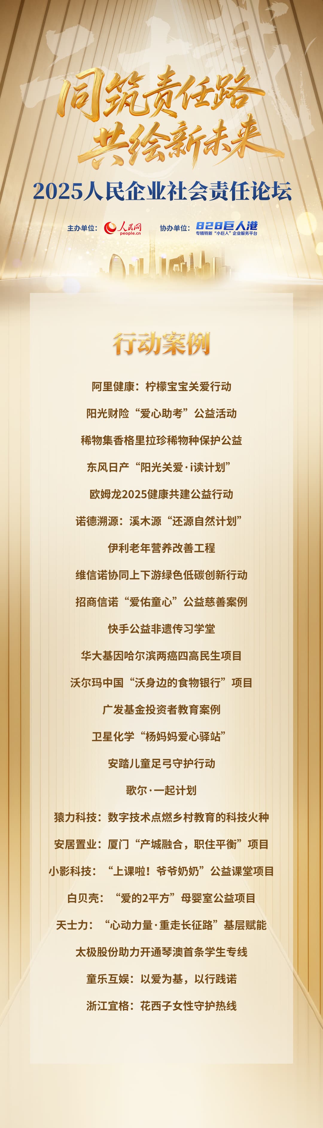 11月1日,2025人民企业社会责任论坛在北京成功举办。与此同时,活动现场对2025人民企业社会责任“行动案例”进行了展示。