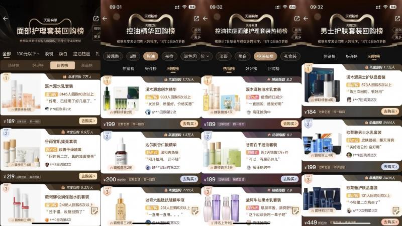 以山茶花系列为例,该系列已经上市4年多,目前仍是天猫护肤重要子类目——护肤套装年度回购榜的前列。另外一个是我们的男士系列产品,截至目前,在天猫男士护肤套装回购榜单上,溪木源男士护肤品系列位居第一。