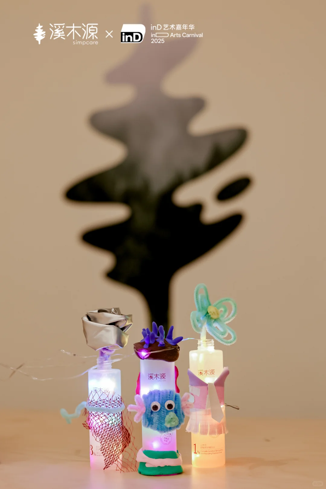 在这一绿色空间内,溪木源携手inD广州艺术嘉年华举办空瓶回收艺术手工坊活动,邀请消费者将产品空瓶改造为小夜灯、花瓶等实用艺术品,赋予废弃物二次生命,倡导绿色生活方式。