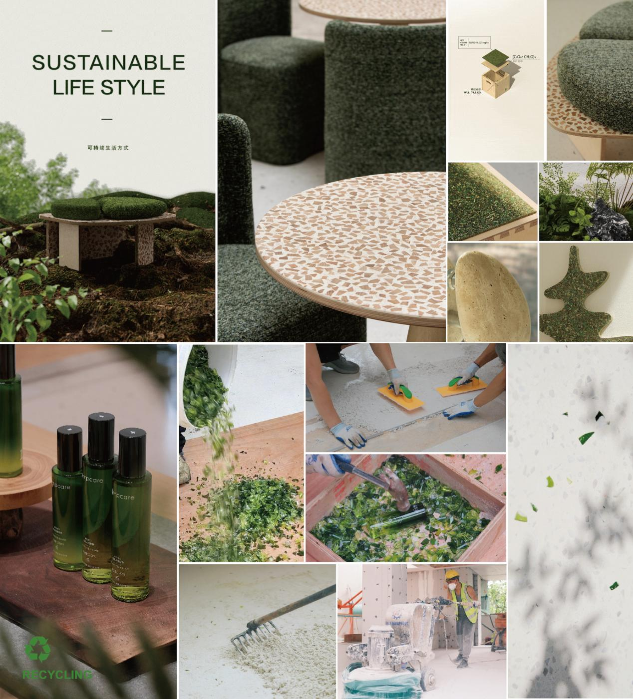 在消费与体验环节,溪木源将环保理念融入线下场景和用户互动中。其位于广州的旗舰店“天光树影楼”,从地面瓷砖到家具选材均贯彻绿色设计:地砖与部分台面由回收玻璃瓶再生制作,家具采用环保板材,天窗结合杜邦纸与玻璃,在优化采光的同时实现节能降耗。